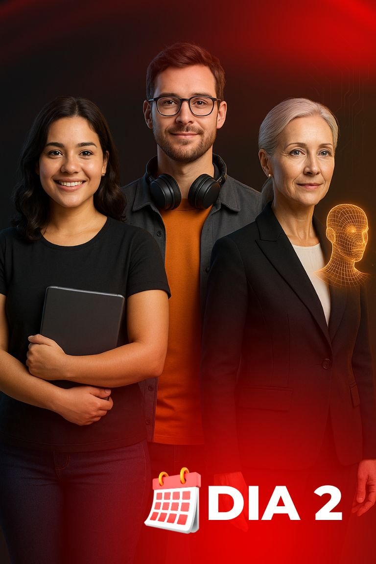 Cada día harás algo nuevo y diferente. Hoy haces un reel, mañana diseñas una animación, al siguiente día lanzas un mini comercial. Y lo harás usando solo la IA, tu celular o computador, sin necesidad de editores profesionales ni programas complicados.